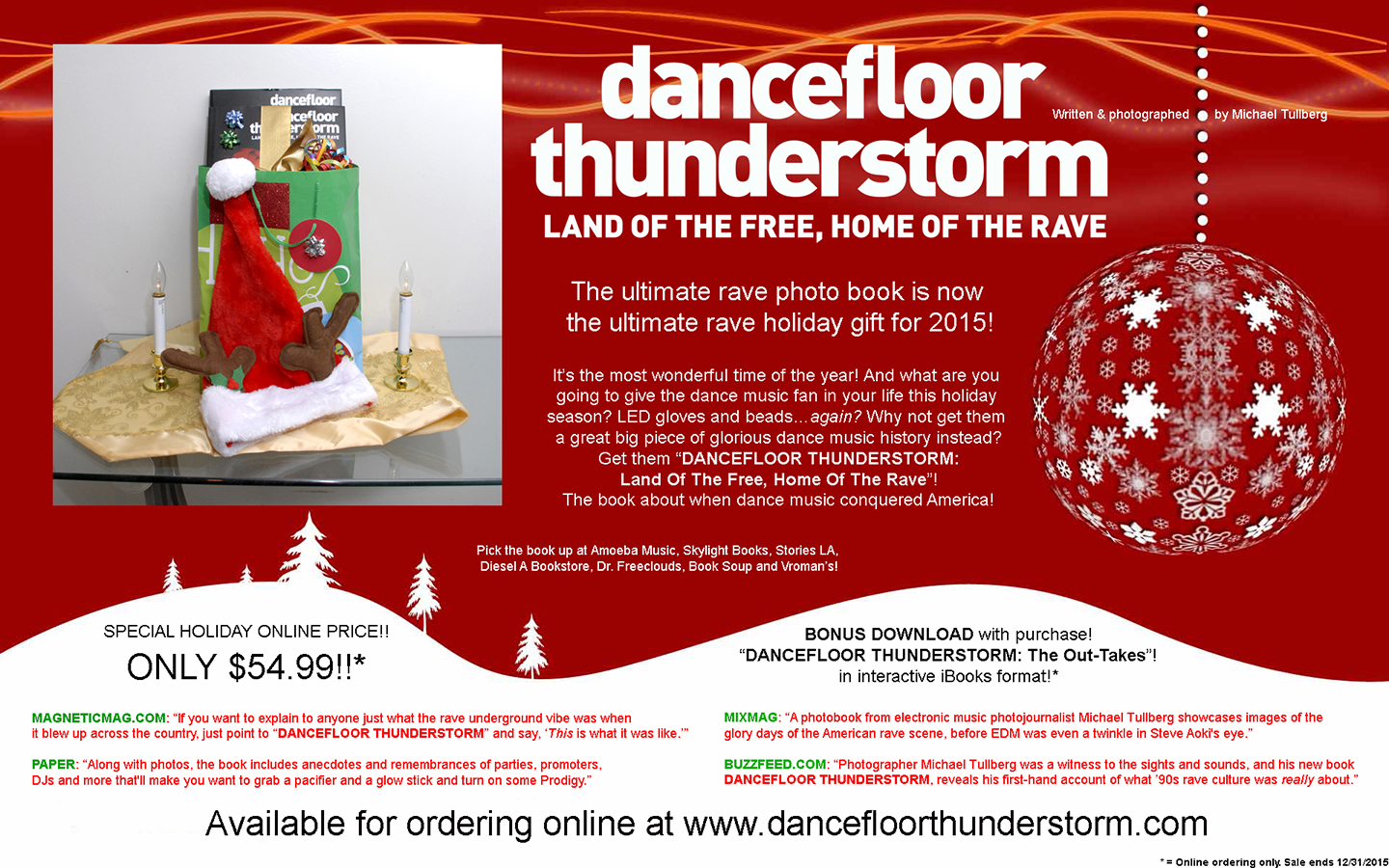 BIG HOLIDAY SALE NEWS!! Having won accolades from Buzzfeed, Mixmag, Papermag, Vice and many other publications, “DANCEFLOOR THUNDERSTORM” is already the perfect holiday gift for any electronic music fan. Now there are two more great reasons to pick it up—it’s the DANCEFLOOR THUNDERSTORM HOLIDAY DOUBLE BONUS SALE!